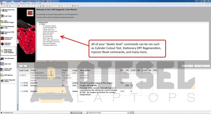 Cummins Insite is one of the most popular engines used in commercial trucks, and this kit covers it all. This kit has everything installed, licensed, and ready to go out of the box. With Cummins Insite, you can peform all the dealer level diagnostic commands such as diesel particulate filter (DPF) regens, cylinder cut-out tests, parameter changes, NOx sensor resets, and more. This kit includes the following: